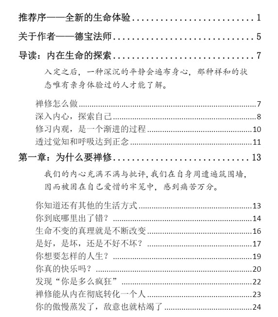 坊间已经有许多详细探讨佛教哲学与禅修理论的书籍,如果你有兴趣的话,我鼓励你们去读,其中有许多写得都很棒。这本书则是告诉你“怎么做”。它是为了那些真的想要修禅的人而写的,尤其是为那些现在正要起步的人。在美国只有少数合格的佛教禅师,在此我们想要提供你动身邀游之前所需具备的基本信息。只有那些遵从本书指示的人才能说我们是成功或失败,也只有那些规律与精进的禅修者才有资格评断我们的努力。没有一本书能涵盖禅修者可能会遇到的所有问题,最后你还是需要一位合格的老师。